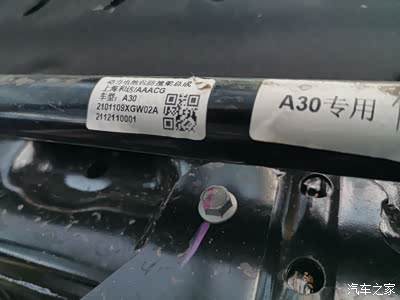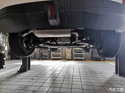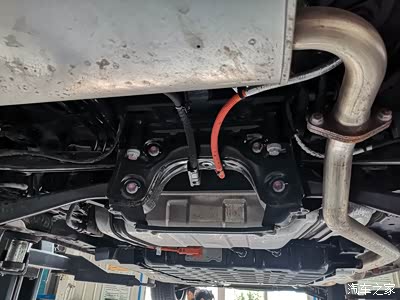 不过终于看到玛奇朵PHEV车型的底盘了,总体来说小玛的底盘是很体现做工和质量的,隔热瓦覆盖很全,动力电池高压线束都有接头和固定螺丝,很多线路套着波纹管,走线规范。仔细找了一下底盘最低点,动力电池的前后两侧有两个最低点,很明显以保护动力电池为目标。动力电池前面的最低点在发动机护板和动力电池之间,紧靠发动护板有一个宽1.5米左右的圆管防撞梁:学名是动力电池包防撞梁总成(上海/AAACG)。动力电池后面的最低点在两个波纹管之间,有一个宽20cm的扁钢防撞梁。这两个最低点目测比动力电池要低3cm,以后有时间测一下这两个最低点离地距离是多少。由于前面的防撞梁很宽,横跨整个底盘,所以向前开不用担心刮擦动力电池,而倒车的时候要小心一点。