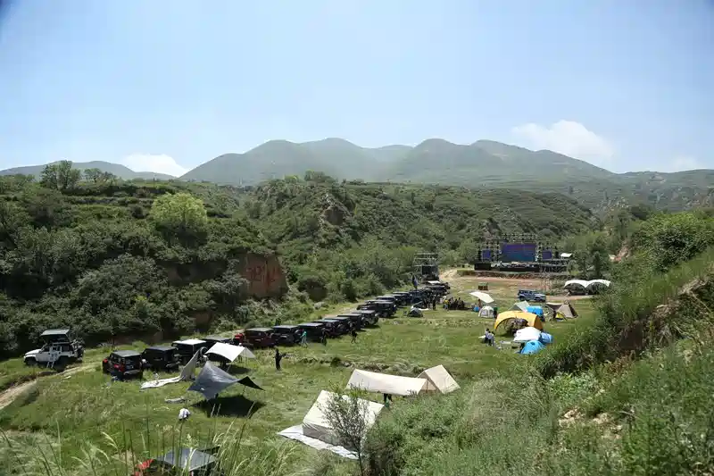 河北张家口的天地梁车主音乐节非常热闹,现场去的车主可真不少。我到的时候就看到了这样的大排场,各车型40车靠山脚一字儿排开,中间空旷地大家都已经自行搭建好了帐篷。