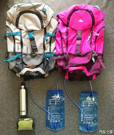 两个登山包,2个水袋一个保温水壶一个折叠水盆。其实这些估计用不上的,主要是觉得要是我和媳妇两个人去比较远的地方旅游,也可以登山看日出什么的。我就喜欢多带东西有备无患。