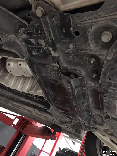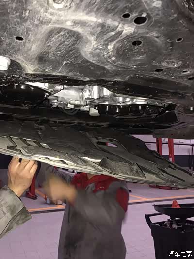拆除发动机下护板,准备放油