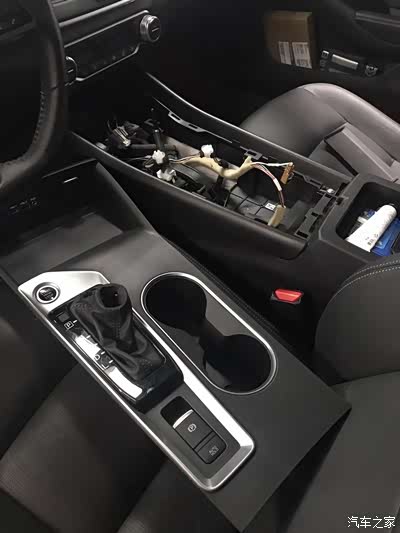 然后把这个档位杆的面板撬开来,记住在放茶杯的垫子底下有一个螺丝,拆掉就可以。