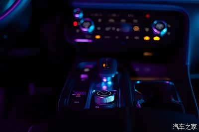 空调系统的亮黑色控制面板的旋钮也自带光感!