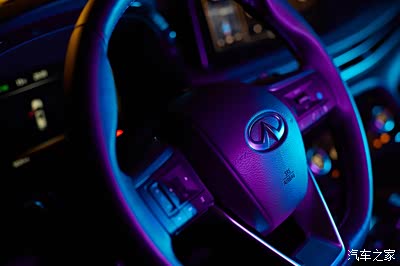 强烈冷暖色的霓虹灯光让真皮全包裹的方向盘也有了一种神秘的超现实感,手感握起来更带劲了!