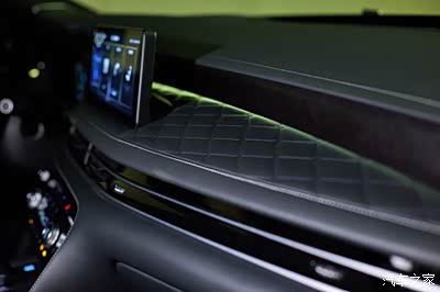 不管是中控台区域还是座椅靠背/坐垫,都使用了菱形缝线设计,特意拍了一张,让大家细看一下做工考究的菱形条纹设计。