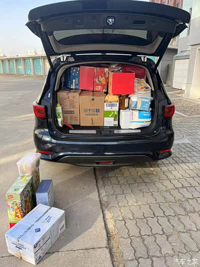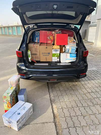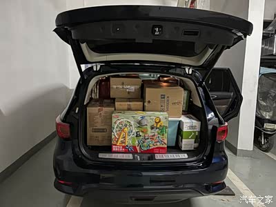 总的来说,七座大SUV的空间真心不是盖的,第三排能够完全平推倒,能装得下3个超级大行李箱,10几个泡沫及纸箱,若干的玩具等等。