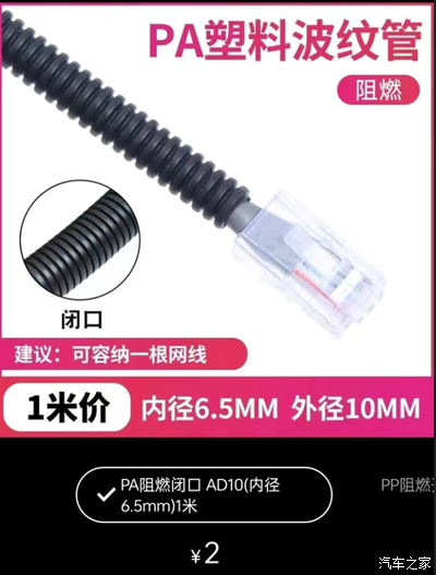 管子分PP、PE、PA,经过比对,决定买PA阻燃管,型号AD10