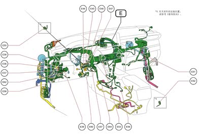 维修电路图,E44的插头-空调放大器,实际位置看下图