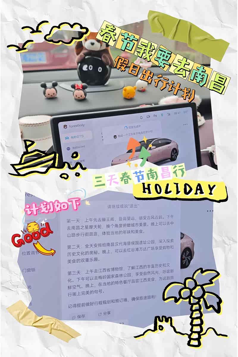 另一个场景,准备过年去南昌,那就让“糯米弟弟”给我规划一个三天春节南昌的旅游计划吧~他思考几秒后,给我制定了三天的计划(其实我已经了解的差不多了,只是纯属考考他)。具体怎么安排的,直接看图片就行。我给他制定的这个计划打80分,因为我觉得,这个计划的安排还是比较合理的,景点兼顾历史人文与古今,吃喝玩乐兼顾商业特色和当地特产。附带的两个问题也具有代表性,还提醒预订的这个细节也还不错。毕竟,现在的AI人工智能是不是在代订景点门票和住宿酒店方面还不够成熟啊?
