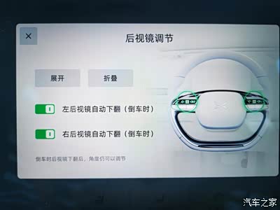 后视镜调节需要在P挡下,非常方便,必要时还能折叠,方便通过窄小路段。