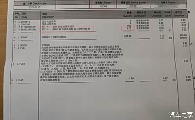 我首保时的保养工单,5.75L机油赫然在目。所以要知道自己的车加了多少机油,保养的时候,密切关注工单。