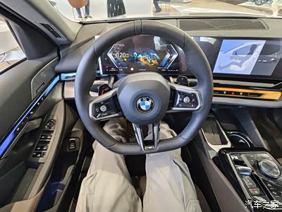 店里展车是辆 530 领先带运动套装,一眼看上去运动感挺强的,不过 5 系这个车的大小,接近五米二的长度,看着就很有分量,了解了一下有 1.8 吨,实际没有重的离谱,