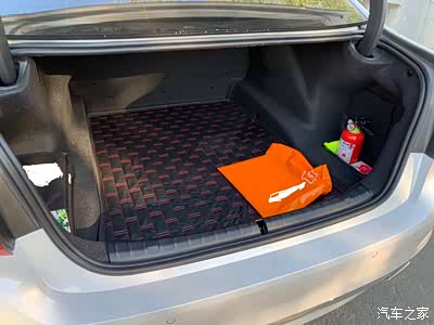 后备箱空间(装潢送的后备箱垫子,很一般很一般,便宜货,灭火器是自己从其他地方拿的(个人习惯性在车上放一个灭火器)原车不送灭火器,绿色马甲是随车来的出厂)