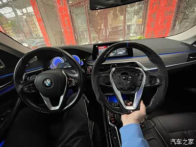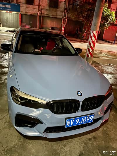 买了530豪华版,然后就改了21款的m5跨界包围,目前还很少改。轮毂也换了19寸的bbs镂空款,贴了瓷器蓝的颜色