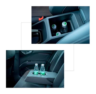 中央扶手箱容积较小,仅可放置三瓶矿泉水,后排座椅带杯架。