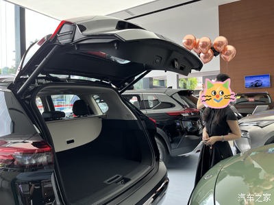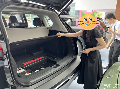 电动尾门只需轻轻一按就开启了,销售说用脚踢一下底部也可以打开。