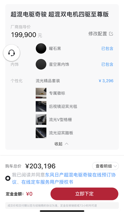 我们第一批下定金的车主在第一天预售期内转正式订单还能有流光精品包,这么好的福利果断转正式订单。