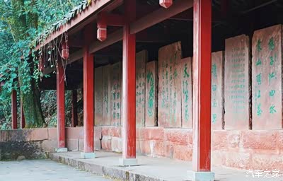 吃饱休息后,就开始爬山赏春啦。离天盖寺不远,就有一处石碑集,可以学习关于茶的诗句哦。