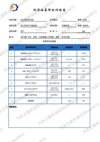 ***和销售及吃日产给的那口饭的人请自重,这是转帖,有问题去机油论坛找这个检测机构发帖的人去。