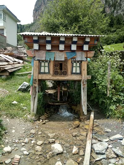 村子边青稞田边的水车,带动着里面的转经筒旋转,不知道是做什么用的,发电吗?