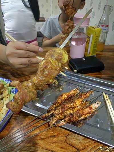 第一天一口气800多公里开到西安,晚上随便找了个烧烤的店胡吃海塞起来,味道挺好的,很有特色,有别于徐州的烧烤。