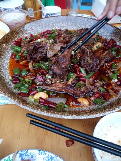 双流停车吃饭,忘了店什么了,好像是牛蛙,干锅鸭,很大份的