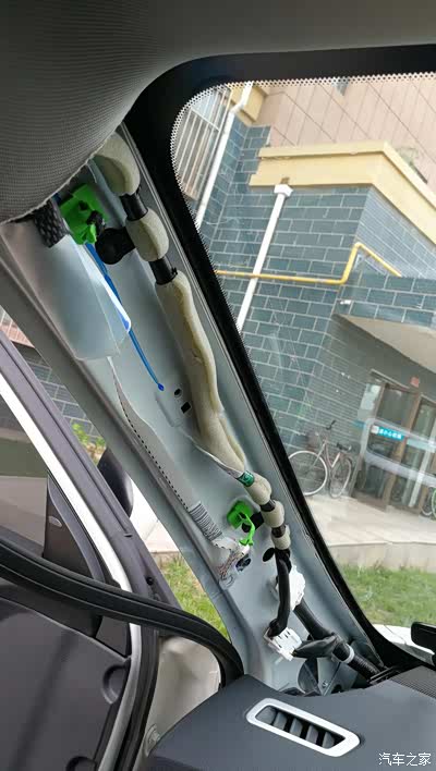 拽下密封条,掰开点A柱盖板,就能看到上下各两个绿色的卡扣~我在这个地方耽误了一个多小时,知道是旋转90就很容易取下,问题是怎么个旋转?没找到一篇帖子详细说明的……在这个地方,打了好几个电话请教……