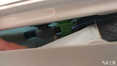 下面那个绿色卡扣没有钢卡,捏住旋转90度,A柱的盖板就可以取下来了~