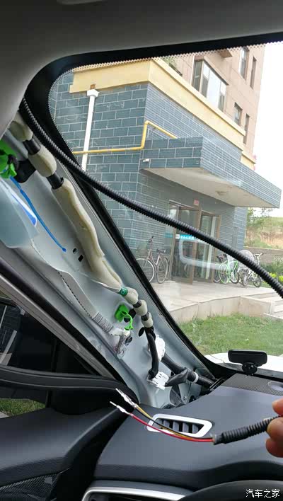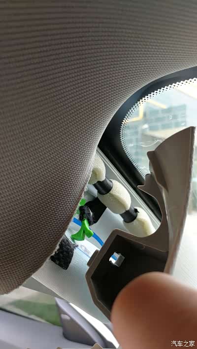 延长线从阅读灯那里开始穿,穿到A柱这里~
