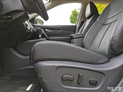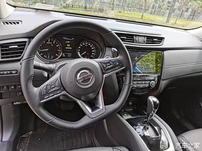 打开前排车门可以看到奇骏的内饰设计很居家以黑色为主调,用料上也使用了大面积的皮质包裹。