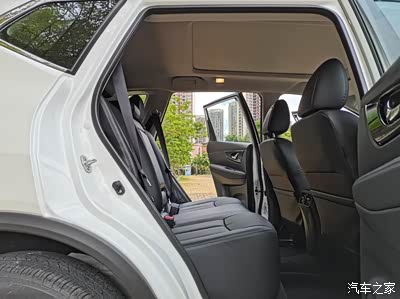 再来看一下后排的空间,奇骏使用了“阶梯式”座椅的设计,后排座椅的高度明显比前排高很多,再加上后排座椅坐垫的横向宽度的有效率高,所以后排坐3个成年男子时的挤压感也不会很强。