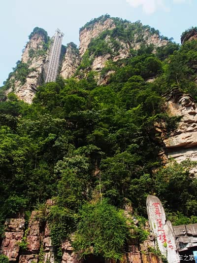 其实,张家界虽然山高又险峻,但游玩的时候,并不需要花费很大力气爬上爬下,三天高强度的游玩下来,也并没有觉得很累,这是为什么?很大程度上,要夸下这里的景区现代化交通设施。我们先坐百龙天梯,直上袁家界。2分钟便可从山底上到山顶。百龙天梯的建造历时三年,耗资1.8亿元人民币,2002年4月竣工并投入营运,是“世界上最高、运行速度最快、载重量最大的观光电梯”因此被载入基尼斯世界纪录。又被誉为“世界第一梯”。要先坐一小段升降机,来到天梯前的小平台。