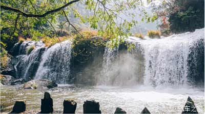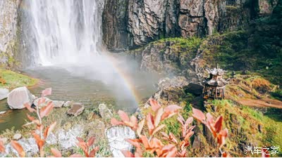 水汽蒸腾着,阳光照射下,彩虹便出现在了这水面之上,梦幻极了。