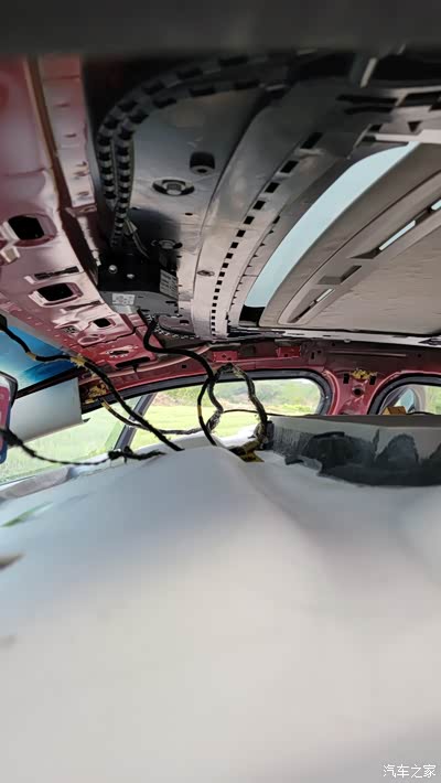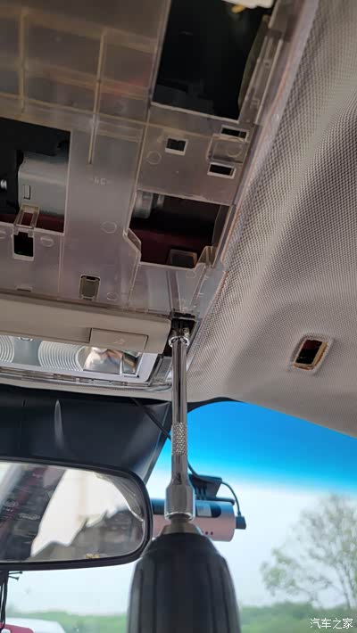 总体来说 要拆两个化妆镜(一共8颗螺丝) 中间顶灯(两颗螺丝)3个把手一个眼镜盒(一起8颗螺丝)后面还有3个卡扣。然后ABC柱的六块盖板一起掰开 整体就能卸下来了