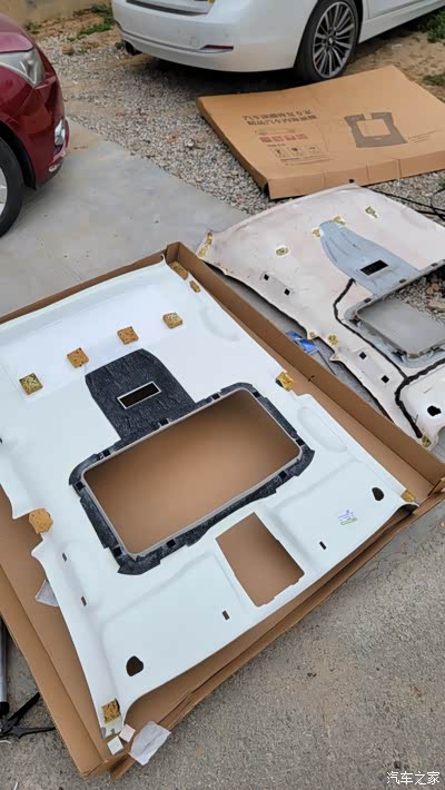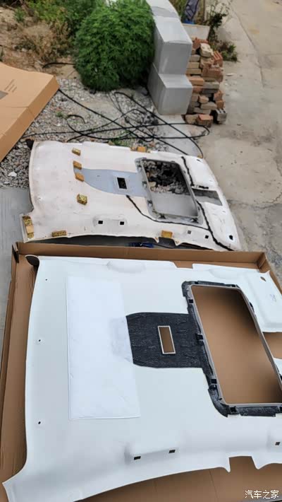 把老的泡沫支撑块掰下 按照老顶棚粘贴的位置粘到新顶棚上