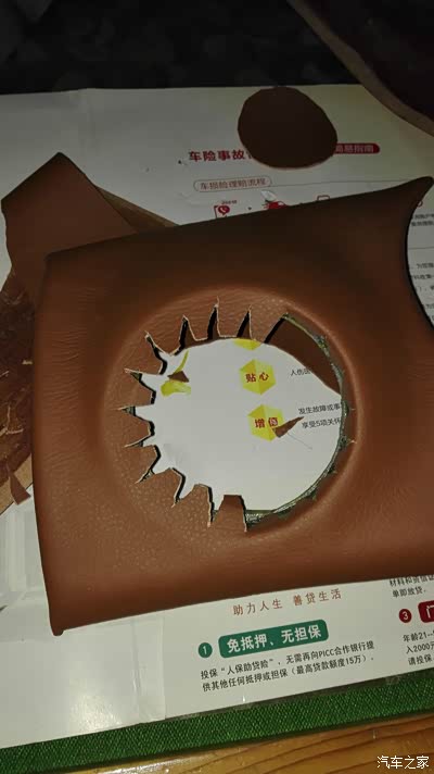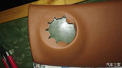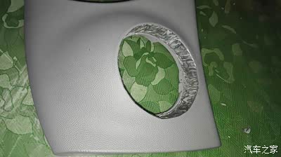 在圆的周边剪掉一些小三角型,尖角不能剪的太靠边了,那样的话在装好空调出风口就会看到小角型的尖,切记。然后再把皮向周边压实,粘稳。