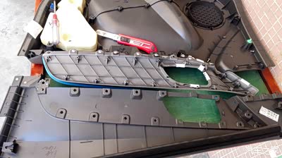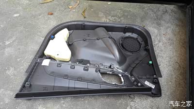 门板是由几个卡扣固定住的,用撬板在门板下面撬开卡扣,周边的卡扣都松开后,就只要摆动着向上提出来就好了,拆下来的样子。