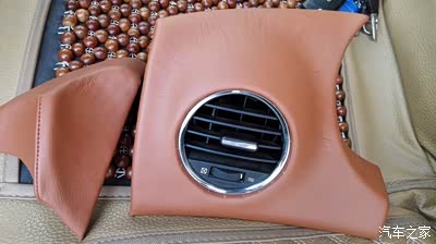 装好空调出风口的样子,还不错吧。这三块面板包皮我一共用了五个小时吧,再加上门板包皮一共用时十小时左右。