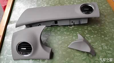 我这个面板上面是没有布的,所以空调出风口周边要用刀片削掉一层(0.5mm厚就好了),要不包了皮就会好难装的进的。