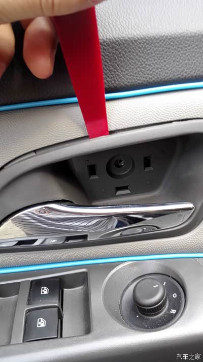 右边空调出风面板要难一点,先要把手套箱的门打开,会看到两个螺丝,有7mm的套筒扳手拧开螺丝,再从右边和上边撬,有一些缝隙后就可以用手从上往下扳开了。