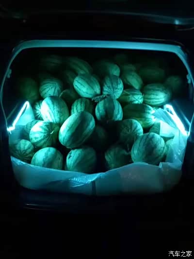 老爸种的西瓜丰收了,回来的时候同事们这个要两个那个要3个,这可好,装了一车,会不会把我的小科压爆了啊![]()