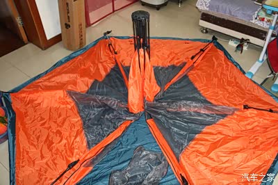 ▲ 六角形的帐篷底部摊开还是很大的,牛津布的底布比较的牢固耐用。