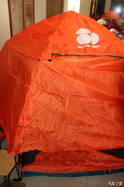 ▲ 外账直接套上,材料是聚酯纤维的,中雨可以抵御24小时,确实很坚挺。