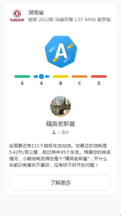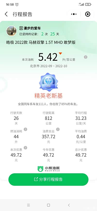 某熊声称目前有111个皓极车友申报了加油记录,本人比上不足,比下有余。