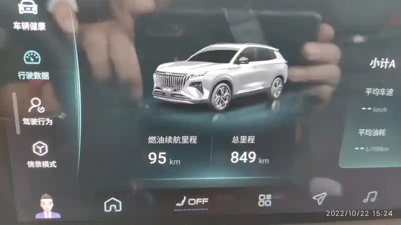 车辆燃油量告警了。总里程849公里,扣除提车加满油时的里程数37公里,首次加满的油共行驶了812公里。实际加油44升,算得百公里油耗约为5.42的样子。这800公里中有大约200公里开空调,其余里程未开空调。