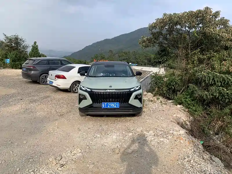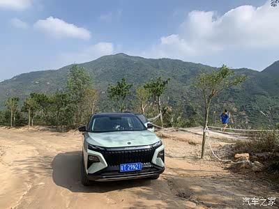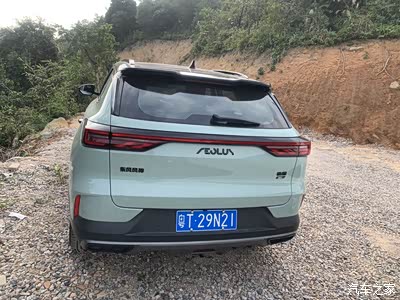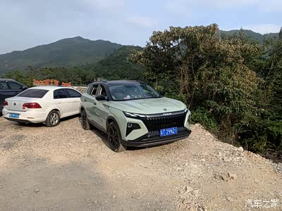 我索性就开到里面去前面还好都是水泥路面,到了上山的时候就都是非铺装路面。导航说距离目的地还有5公里,我下车看了一下,皓极应该是可以挑战一下的。我就上车驱动车辆开了上去,皓极很给力。很五六十度的大坡都轻松上去,而且有的坡还是比较长的。从山脚下到山顶应该有45百的海拔,我全程都是开标准模式,没有开运动模式,都可以轻松抵达山顶。