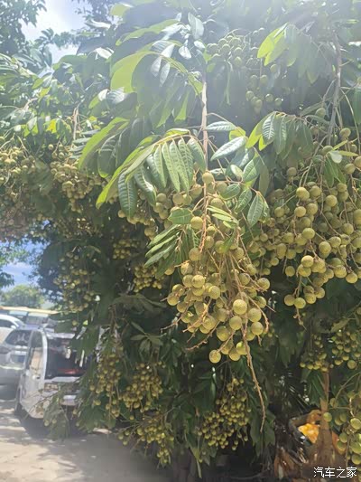 龙眼多的把树干都压弯了,看着小小的绿绿的还没有熟,其实很甜,别问为什么我会知道甜不甜。。。
