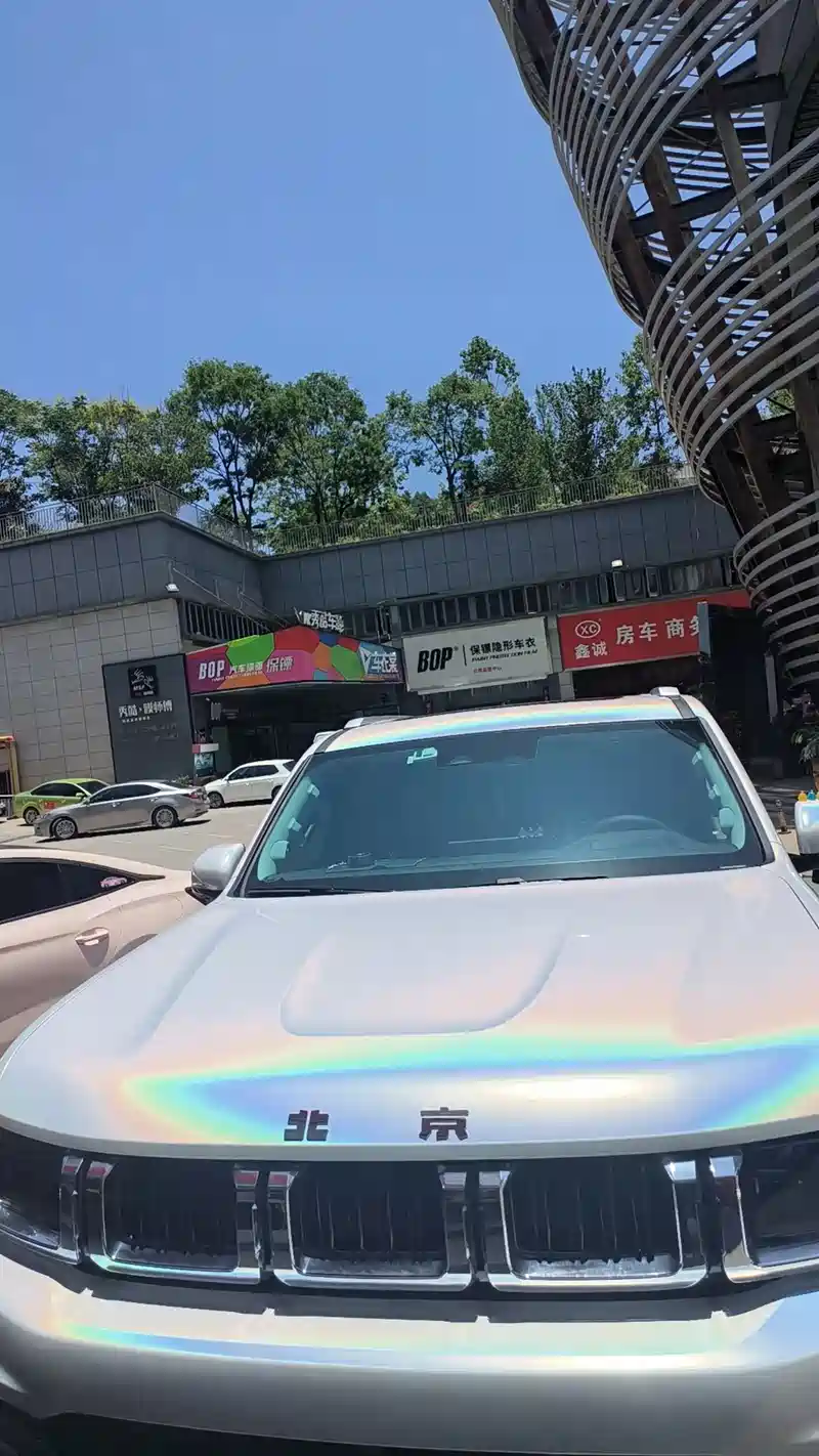 白色BJ60搭配镭射七彩车衣太阳底下不要太好看!