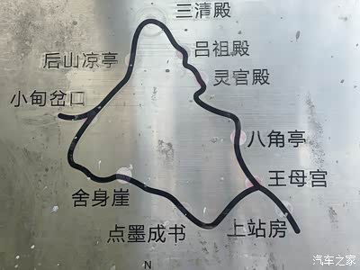 从王母宫后门继续走,在爬过最陡峭的一段石阶过了八角亭就登上了灵宫殿。