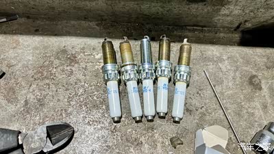 换个角度看,个别火花塞颜色比较深,隐约有点油渍,但机油那边没报警,开着也没抖动,油耗也很稳定,不管它了,不是油炸的成色就行。