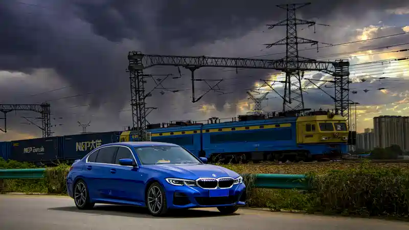 等了许久,终于等到了宝马3系与火车同框的瞬间。